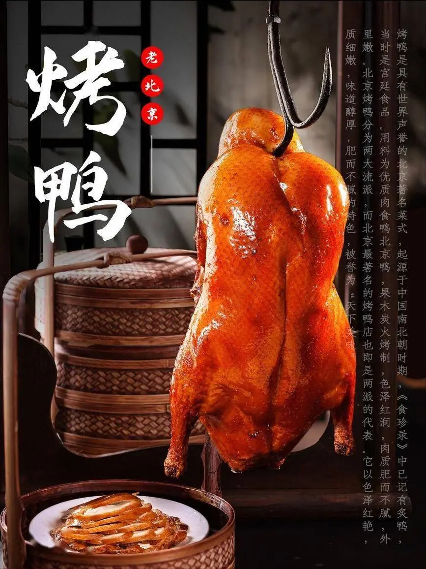 其形态饱满,色泽红亮,肉质紧实而不柴,皮脆肉嫩,入口即化。食用时,将烤鸭切块,浇上特制的红卤,甜中带酸、咸鲜适度的卤汁与烤鸭的鲜美完美融合,令人回味无穷。