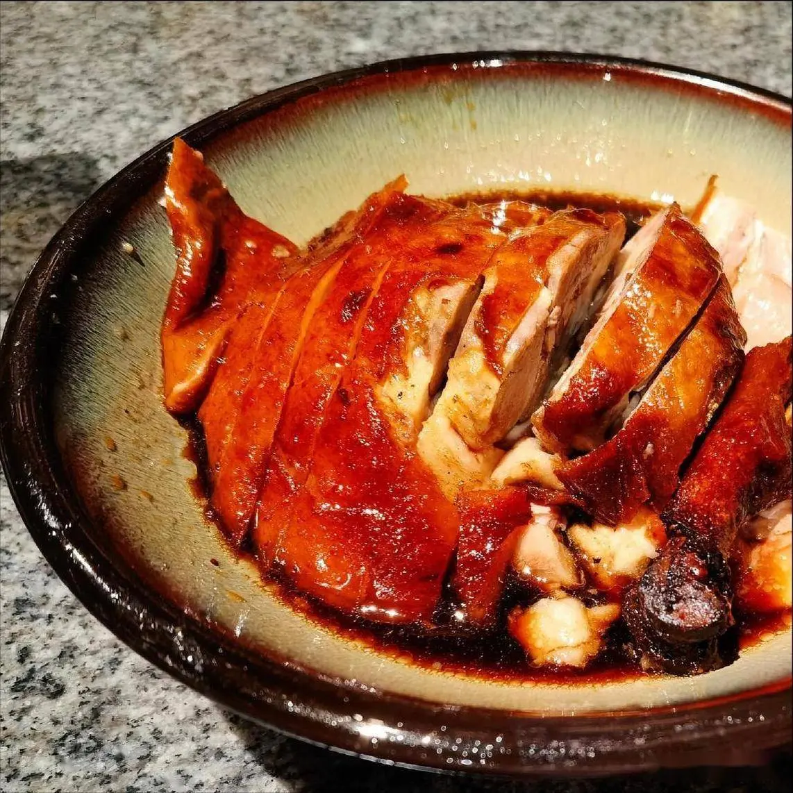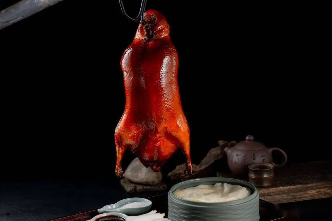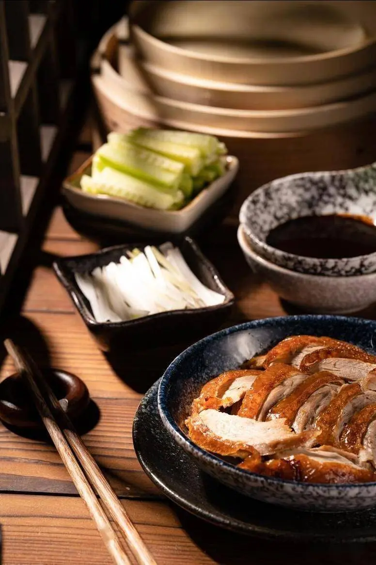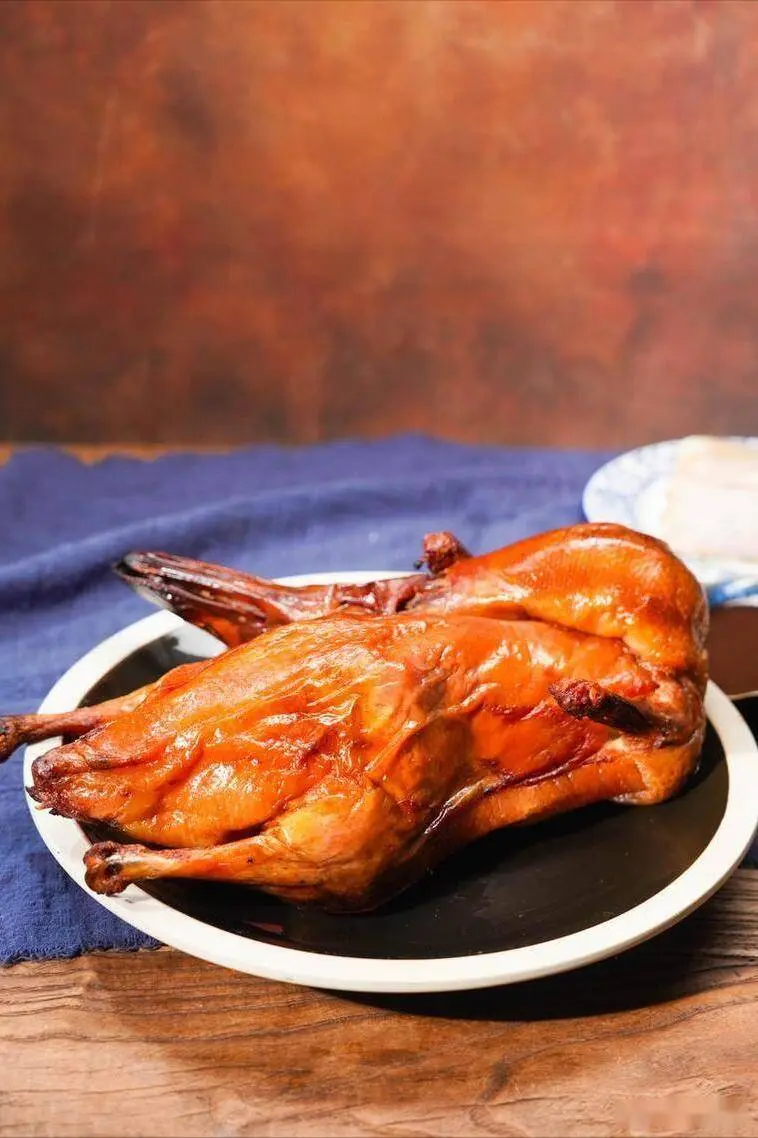 果木独特的馥郁香气,丝丝缕缕沁入鸭肉纹理,随着时间推移,鸭皮渐呈金黄透亮之色,滋滋冒油,宛如琥珀流金;鸭肉鲜嫩多汁,入口即化,脂香与肉香完美交融,于舌尖上演绎一场味觉的绮丽盛宴。