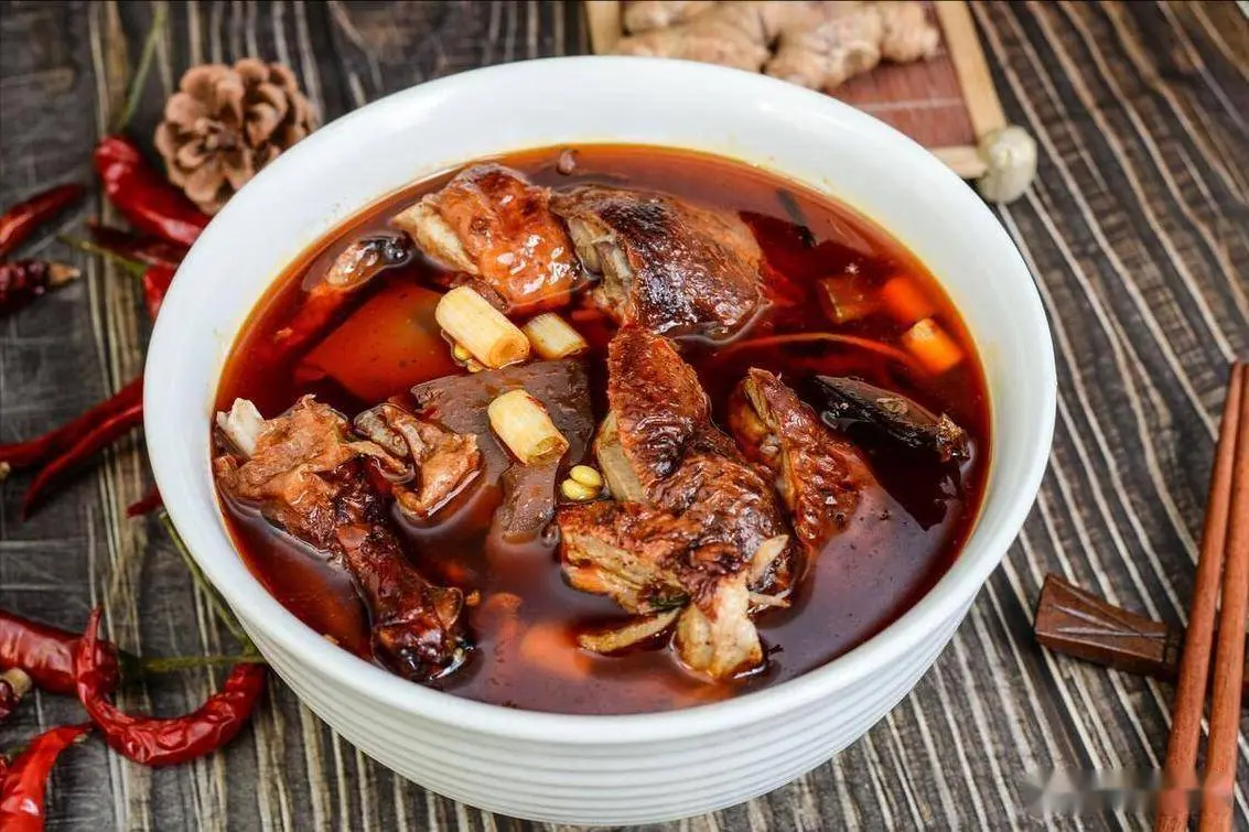 7:冒烤鸭。冒烤鸭并非古已有之的美食,而是近年来在川渝地区兴起的一种地方特色。其灵感来源于传统的冒菜与烤鸭的结合,将烤得香脆可口的烤鸭肉,与冒菜中丰富的蔬菜、豆制品等食材搭配在一起,既保留了烤鸭的经典风味,又增添了冒菜的鲜香麻辣。